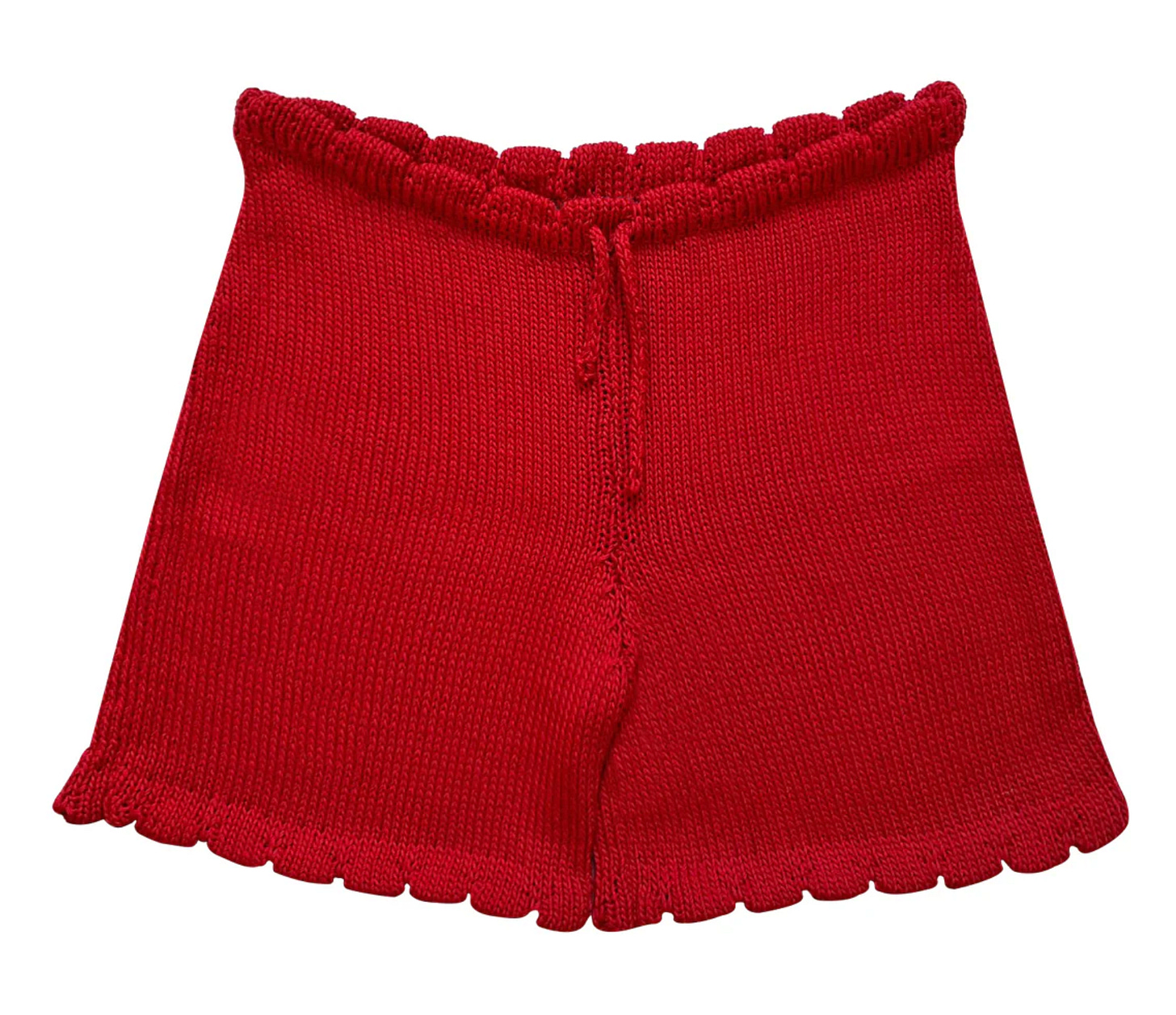 and these very cute cherry red cotton knit shorts with scalloped edge, $138