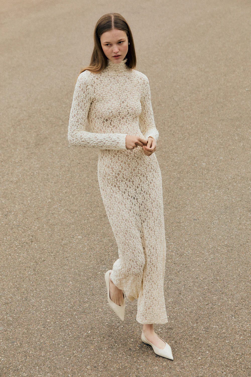 My personal choice…this Enza Costa cotton lace turtleneck dress in a buttery off-white (also avail in black). $675
