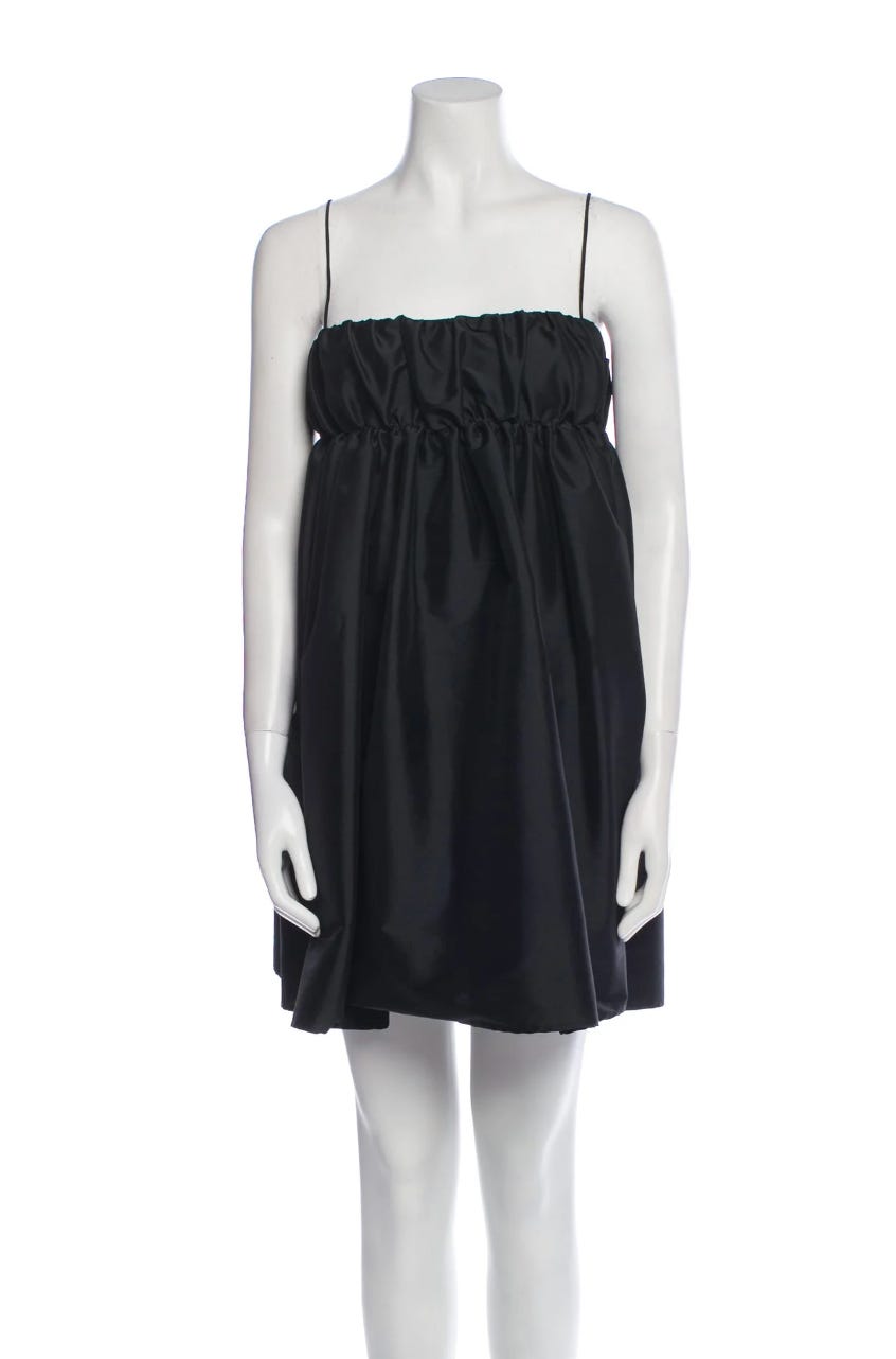 More heavy satin! Babydoll mini by Bernadette, size S, $222 (justify this purchase by considering $222 an angel sign). Pair with: