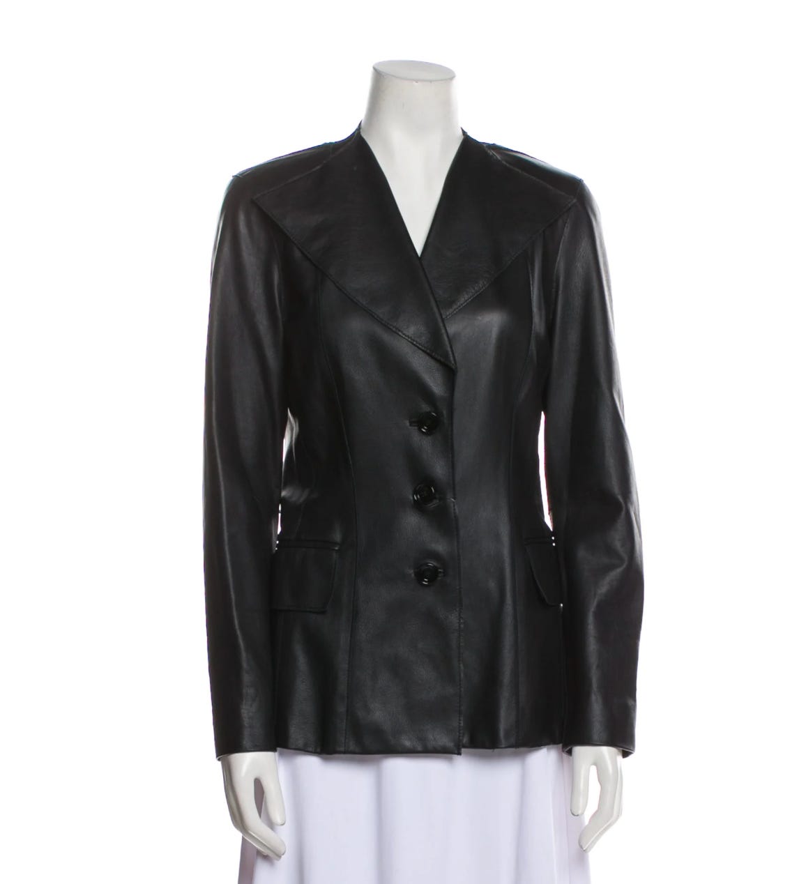 Perfect 100% leather blazer with wide collar, size S, $148.50