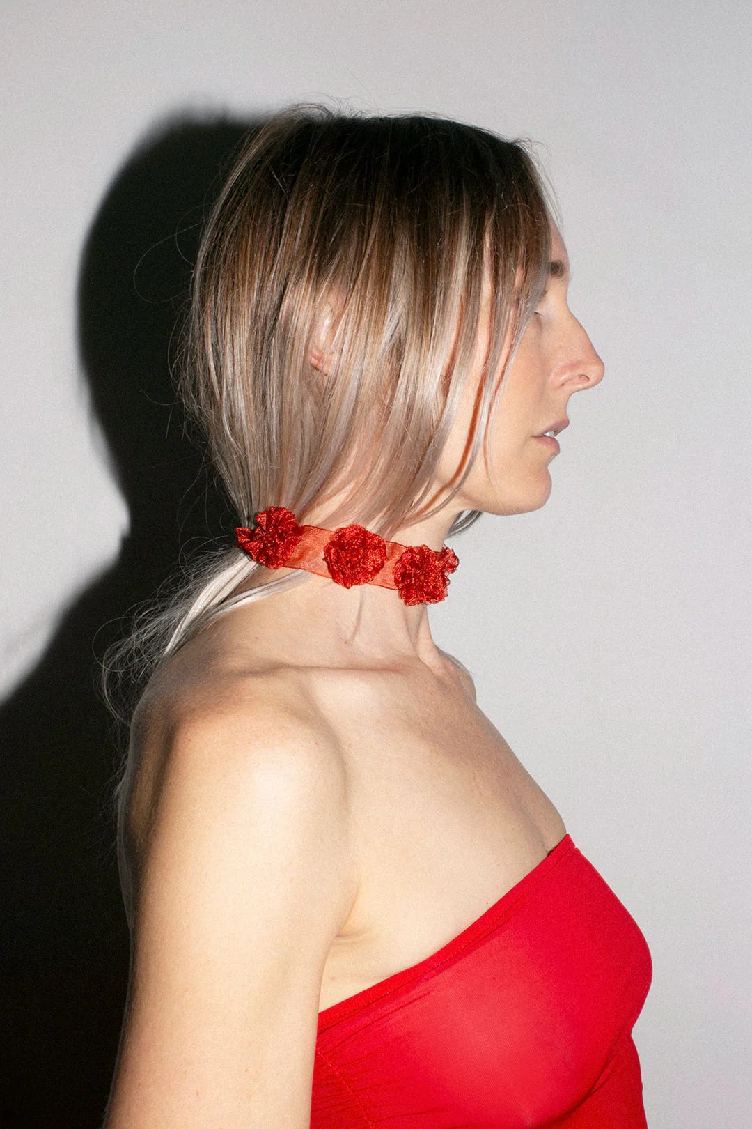 Paloma Wool red ribbon choker with florettes, $121