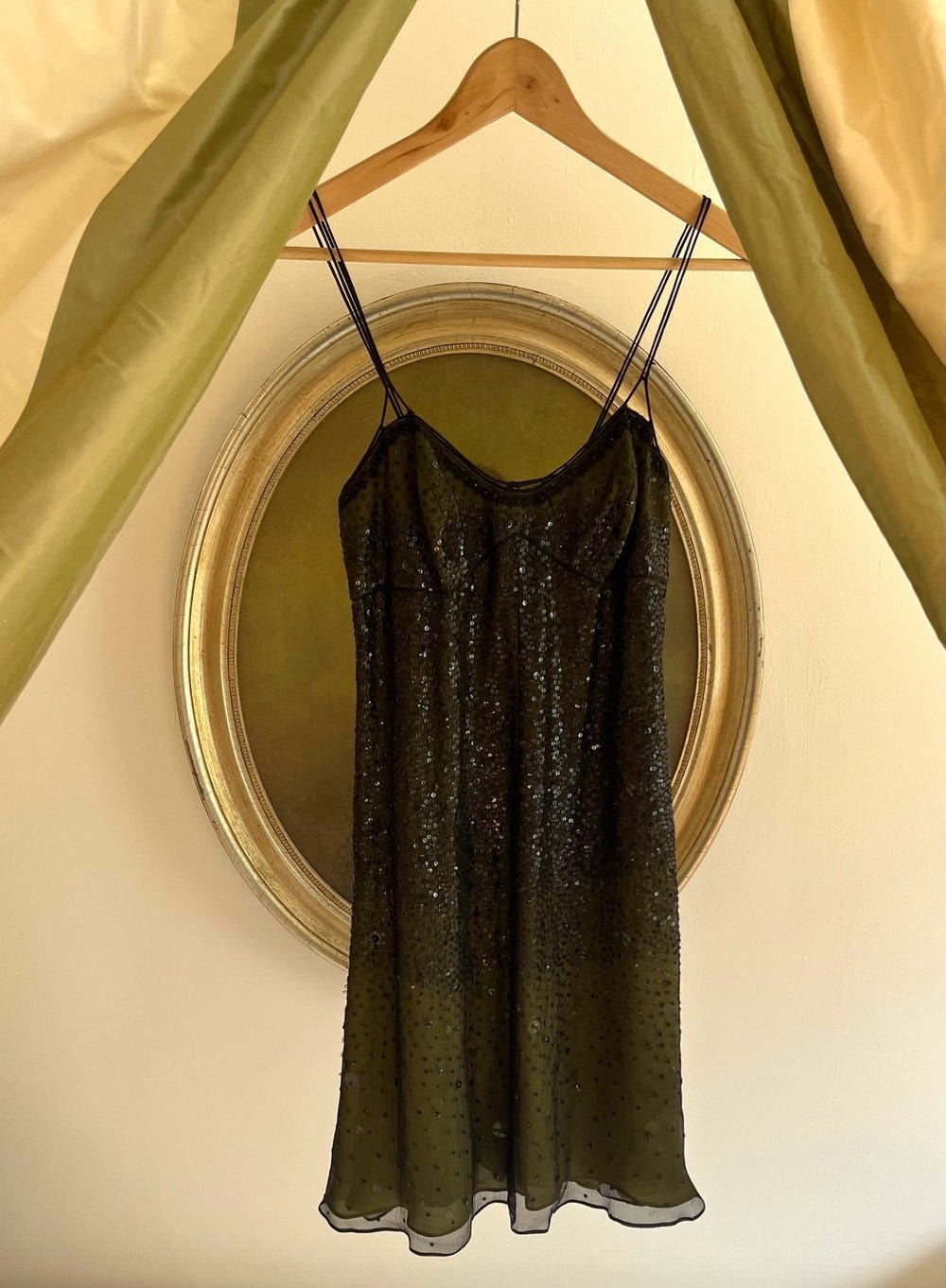 Love this vintage beaded cocktail dress with chartreuse silk lining from my dearest Lucia Zolea, size 4 approx, $120