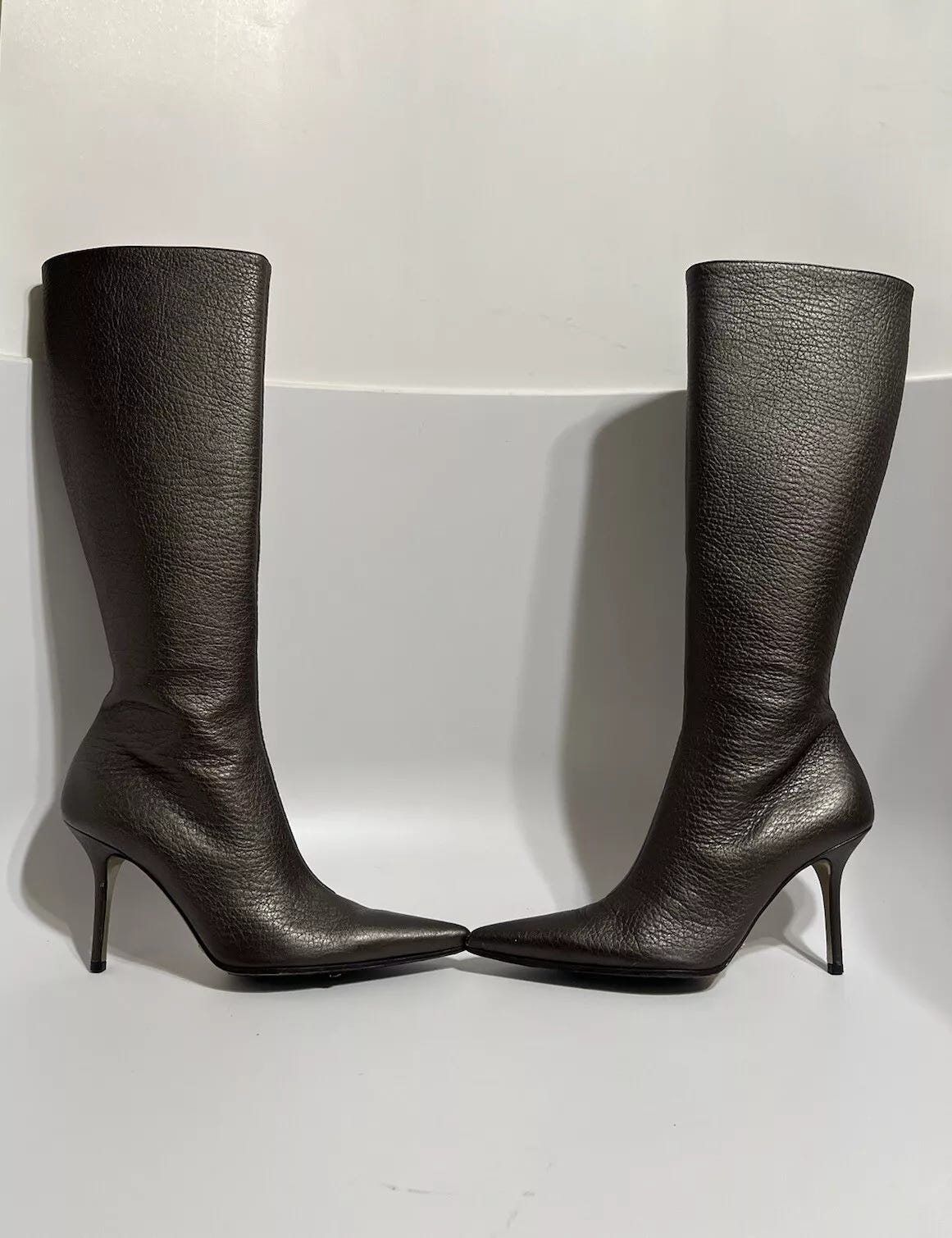 Very versatile vintage dark brown pebbled leather Dolce and Gabbana heeled boots, size 8, $245
